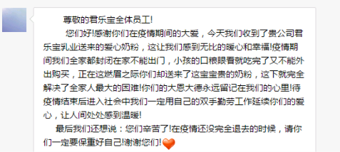 “讓人間處處感到溫暖……”一段消費(fèi)者留言感動(dòng)君樂(lè)寶