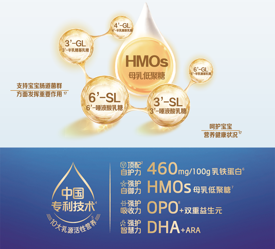 5、10大活性營(yíng)養(yǎng)物質(zhì)注解:α-乳白蛋白、β-乳球蛋白、乳鐵蛋白、免疫球蛋白、酪蛋白糖巨肽、骨橋蛋白、乳過(guò)氧化物酶、3'-唾液酸寡糖、6'-唾液酸寡糖、乳脂球膜營(yíng)養(yǎng)群。