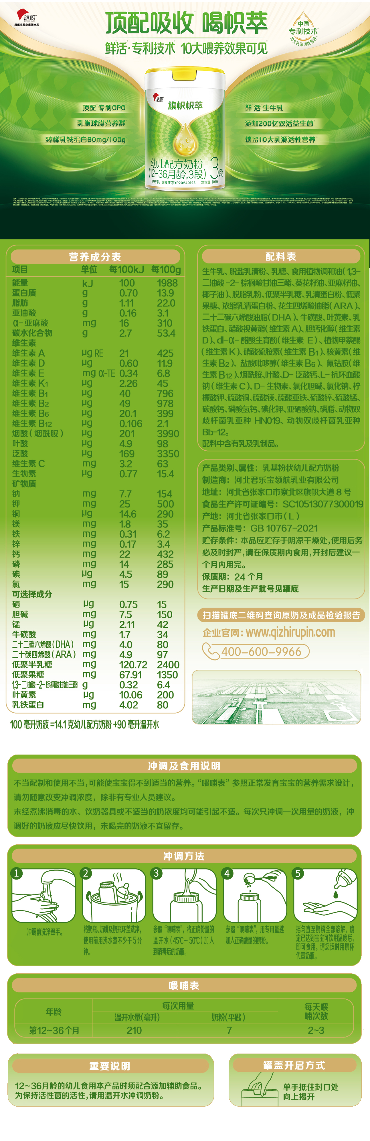 旗幟鮮活奶粉 中國專利技術(shù)-擠奶到加工僅98秒,源乳級鮮活,保留天然活性蛋白;自有牧場100%鮮活生牛乳,頂配專利OPO 更易吸收+10大乳源活性營養(yǎng)+添加200億雙活益生菌、益生元組合,10大喂養(yǎng)效果可見,呵護(hù)寶寶成長。